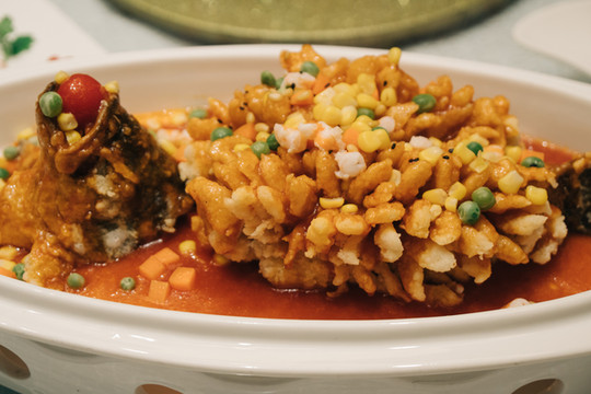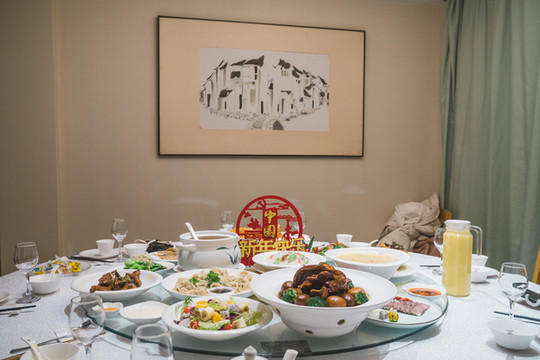 2020年最后一顿晚餐,我们选择了周庄古镇里面的全功楼时尚餐厅的金牛迎春团圆宴,菜式是非常有江南特色的传统佳肴,周庄最有名的万三蹄必然是桌上的最重点,配上圆润的卤蛋,寓意为富贵团圆,还有酸甜可口的江南名菜松鼠大桂鱼,团圆饭必备的年年有余等等。