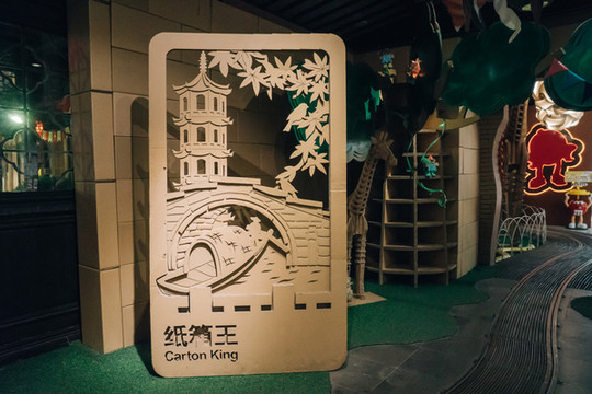我们到达周庄天色已经在渐渐暗了下来,参观了一下住的客栈附近的纸箱王主题创意园区,这是一个用纸箱打造一切的艺术创意园,从院子里的大型纸箱艺术品到店里面的小型纸箱艺术品,都被制作的栩栩如生。