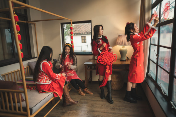 一路满足的在乡村里漫步回到客栈,客栈老板说想要给房间增添一点新年的味道,于是我们开始自己动手剪纸,贴窗花,把房间装饰的满是喜庆的味道。