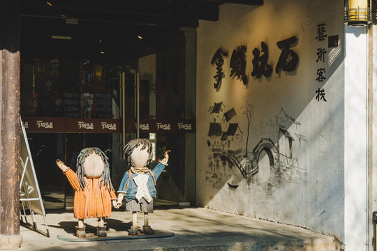 这家客栈就在纸箱王创意园区里面,离周庄的大门也很近,地理位置极好,正如它的名字,这是一家充满艺术气息的客栈,公共区域和房间里都摆了很多铁制艺术。