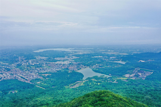 茅山风景区若只是在山间小路行走,可能一叶障目,所见不过是一小撮绿意。唯有登上顶峰,视野无限放大,漫山遍野的绿意与一碧如洗的天空交相辉映,连成一片,令人叹为观止。