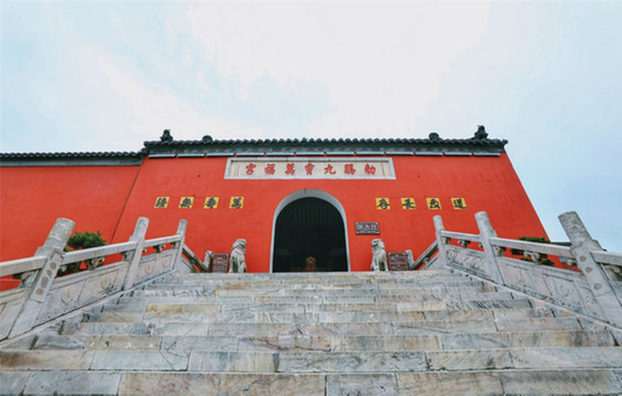茅山风景区九霄万福宫位于茅山主峰之巅,故又称顶宫,是茅山道院中影响最大的一座宫观,坐北面南,东西对称,结构严谨,布局合理。