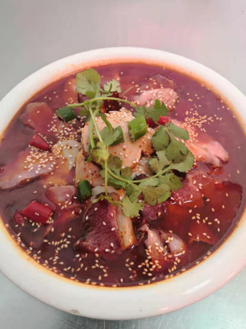 刘肇兴餐馆新坊分店这个叫驴血旺,店家说这个菜不长有的,因为驴血很稀缺,与众不同的是这里的驴血是白的,是用纯血清做的,味道很棒,喜欢吃辣的小伙伴首选~
