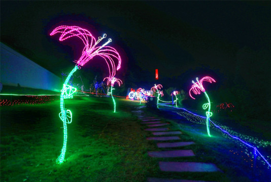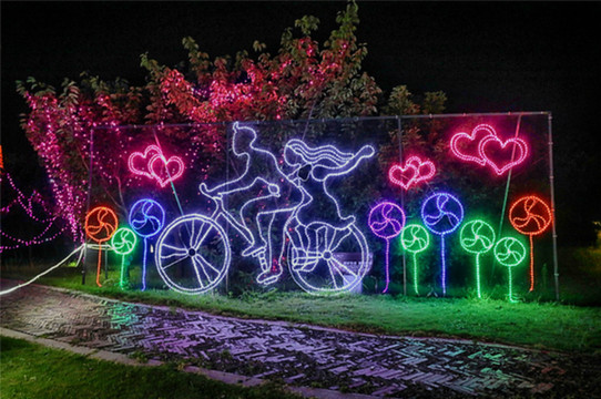 本次灯光节分为四个灯光区域,分别是爱情区、海洋区、儿童游乐以及献礼新 中国 成立70周年的红色主题教育区。
