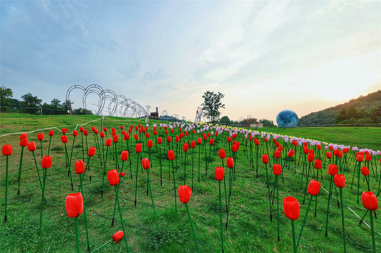 此外,草坪上还有一个巨大的“网红月亮”,乍一看,像极了微信的登陆界面,象征着圆圆满满。