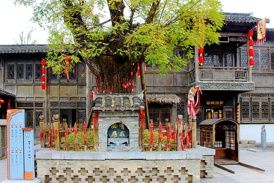 漫步于古村中有一种仿佛穿越时光的感觉,在这里你可以看到:粮油铺、豆腐坊、小吃铺、酒坊等等。把明清时期平民百姓的日常生活淋漓尽致地展现了出来。虽是仿古,但不失古韵,也正是这一点吸引了不少游客前去。