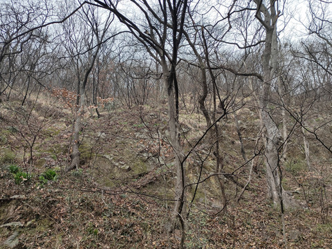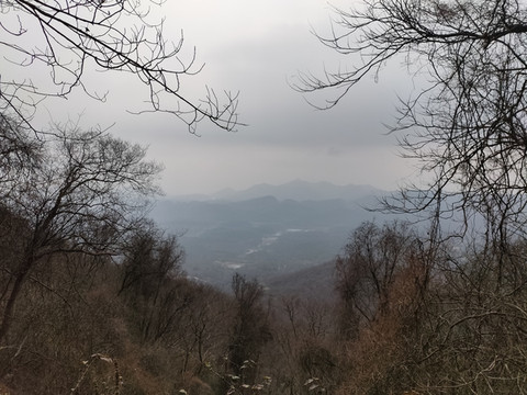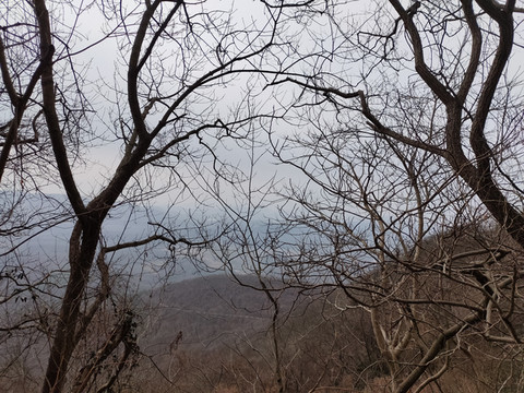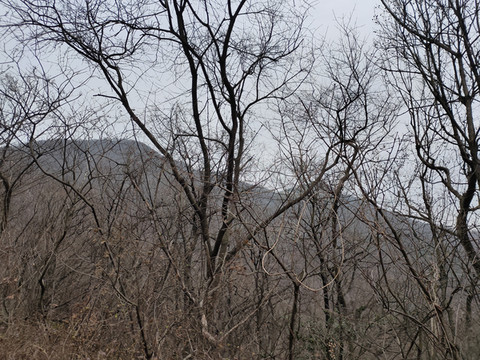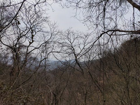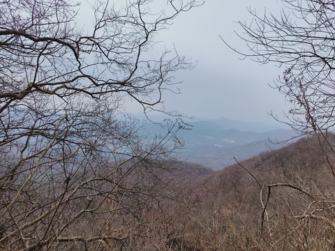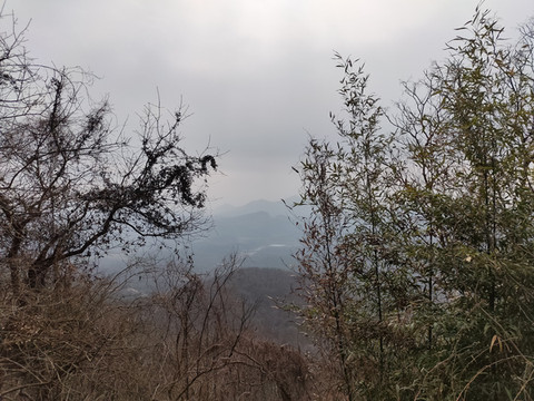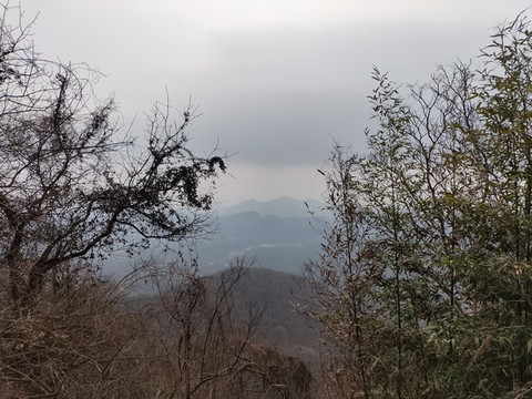 透过树丛,可以看到远处连绵的山峰,比起脚下的山地,确实矮了一些。现在我们还没有登上山顶,看来大华山果然不愧是镇江第一高峰。