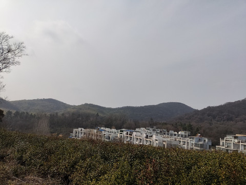 跟着导航开到了一个度假区,看起来很有规模,但似乎并没有投入运营。这里距离宝华山很近,可能是为宝华山配套的吧。我们走进度假区,看到门口的牌子上果然写着“宝华山国际旅游度假区”,看来建成以后的规模不会小。