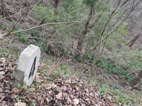 这里没有其他可以攀登的山路,虽然路上也看到有岔路,但是也没敢往里走,还是走蜿蜒曲折的盘山道下山。好在下山的路走得轻松多了,小狗们依然在看到我们过来的时候狂吠。这次我们才不怕它呢,很从容地从它的面前走过去,还在旁边停留了一下,原来这里是大庵森林防火站。