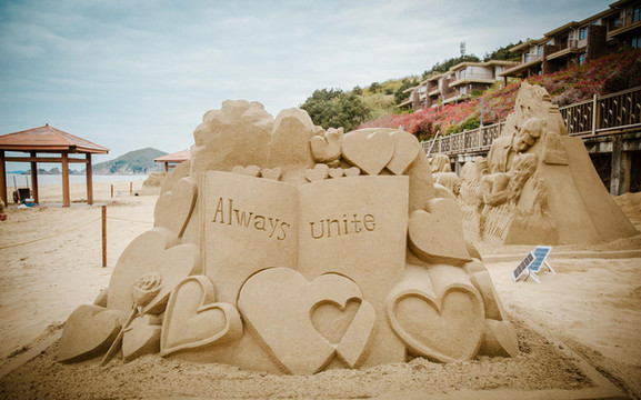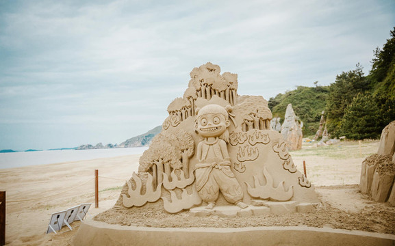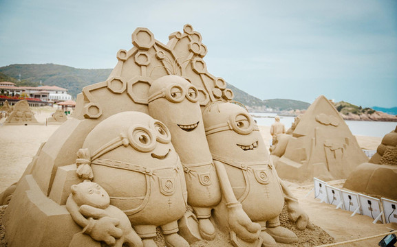 沙雕,简单的说就是把沙堆积并凝固起来,然后雕琢成各种各样的造型。形态逼真的哪吒,象征着爱情的海誓山盟,与时政息息相关的钟老雕像,雅致浪漫的迪士尼乐园……,漫步其中,欣赏着壮阔又有趣的各种沙雕,脑子里似乎都能想象得到各种精彩有趣的故事。