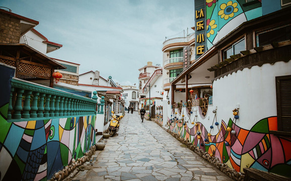 漫步在大街小巷里,你会发现,家家户户的墙上都被描绘上了充满当地特色的,美轮美奂的彩画,仔细瞧着,这些象征着渔家古老图腾的渔民画色彩斑斓却又各不相同,有出海图,章鱼图,捕鱼图等等,色彩丰富,构思奇巧,质朴奔放又别致雅观,构成了一道独具海岛文化特色的旅游景观。