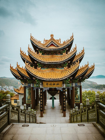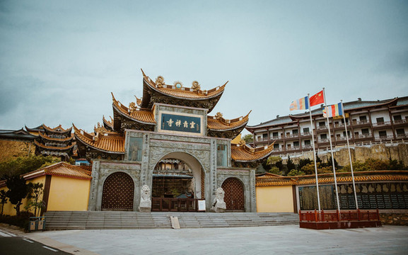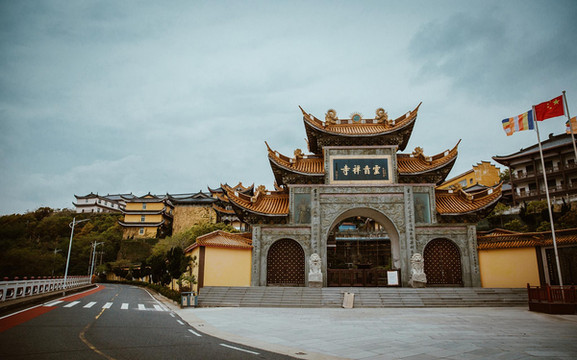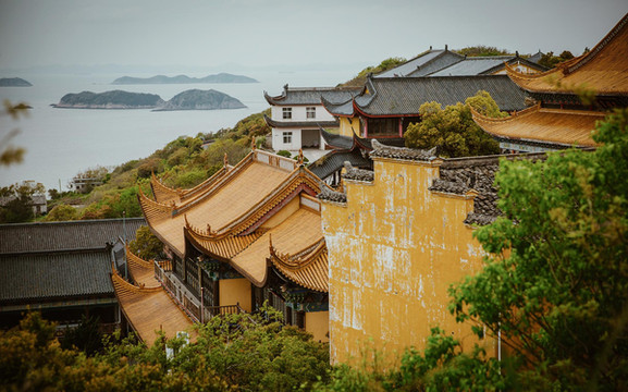 灵音禅寺依山而建,西连群峰,东滨大海,始建于五代十国后晋八年(九四三年),为嵊泗佛教胜地,原名资福院,历经千百年风雨,几经损毁又几度重修,成了现在巍峨雄壮的灵隐禅寺。