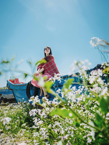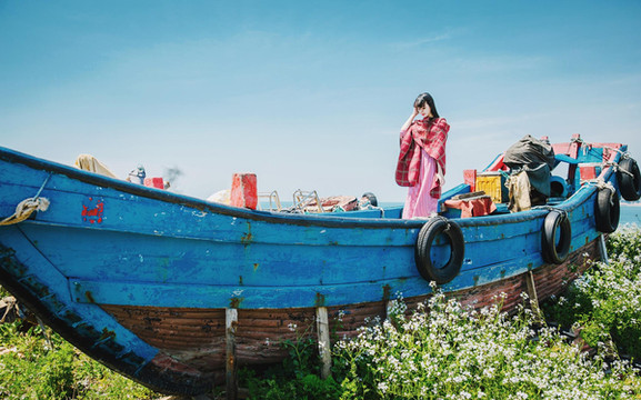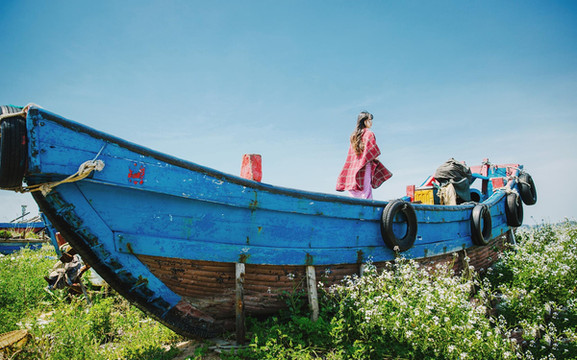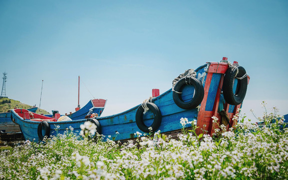 回程的时候路过几只废弃的渔船,摆在海边的空地上,船脚下长满了野花,看起来格外的清新;
