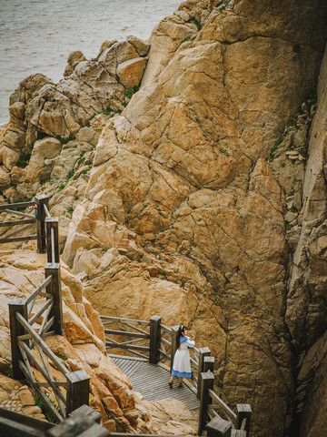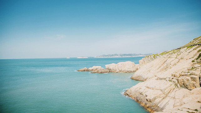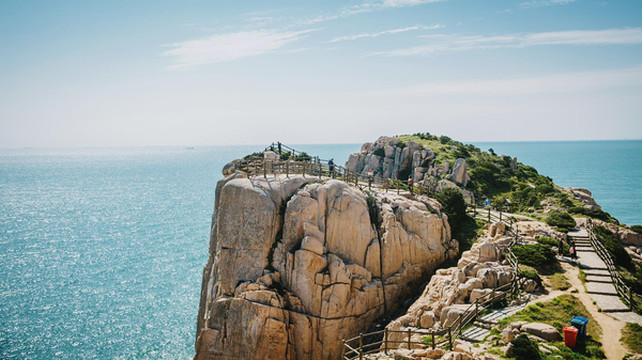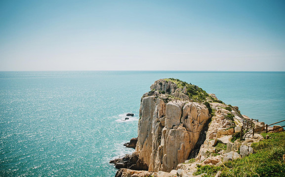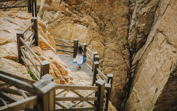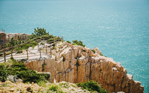 沿着木栈道慢慢往下走,脚下悬崖峭壁,耳边潮声四起,令人胆战心惊。面临茫茫东海,怪石嶙峋,崖壁陡峭,惊涛拍岸,是观海上日出、看千舟竞发的最佳之处。