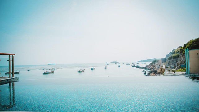 后面有处临海的休闲小院,当中有座超让人惊艳的无边泳池,空闲时看看周围的舒适绿意、夜晚闪烁的星空、晨起倾泻的阳光,每一幕都让人停不下来对美好生活的赞叹。
