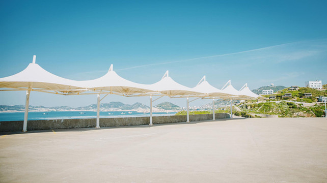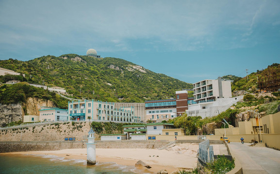 继续往前,大悲山的山顶观景台是这里登高揽胜的最佳点,可俯视基湖、南长涂两大形状相似的沙滩(姐妹沙滩),又可远眺千岛景色,从山下的五渔村开始延绵的青山绿烟,依山攀爬,绿光的森林在山顶交汇。