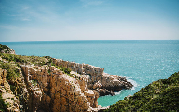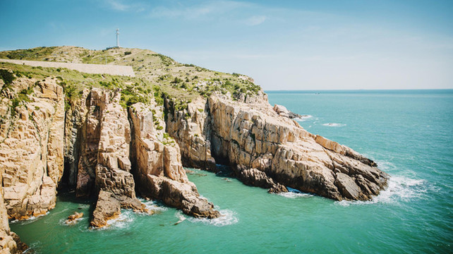 崖顶是观日出、揽海景、望渔舟晚归的最佳点,凌空绝壁,层层叠叠,奇观异石,形态各异,运气好的时候还可以泛舟海面看渔夫打鱼、渔嫂拾贝,海娃攻贻采螺的丰收景象。