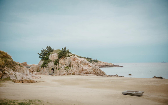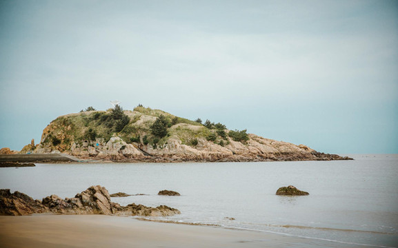 沙质柔软似棉毯的南长涂,漫步其间,如履金毯。四五月的天,既没有刚入春时的料峭之寒,也没有盛夏时的炎炎浮躁与慵懒,周围的松林、悬崖、奇石、孤屿与澄澈的海水融为一体,美成了一幅画。