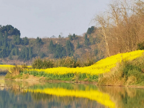 如此美景的造就是可爱的当地农民们,在沙河滩上面种了不少油菜,这才有了如此美丽的三月油菜花,漫山黄遍,美不胜收。