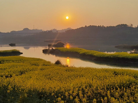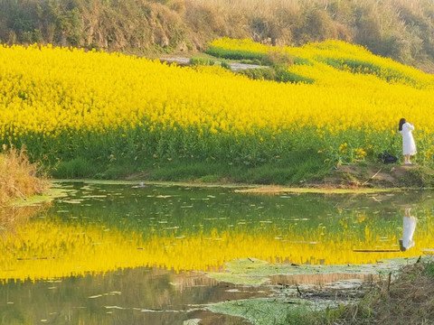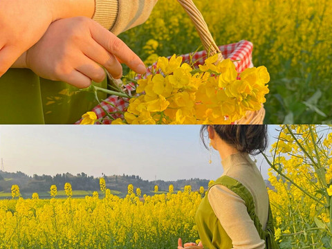 阳光与金黄花瓣缠绕,一闪一闪,仿佛步入了油画世界,漫山遍野的油菜花,放眼望四周,处处金黄;