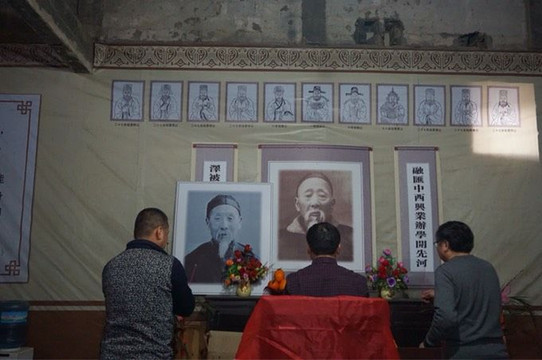 屋里挂着先祖(周馥)和四叔(周绍良)的相片