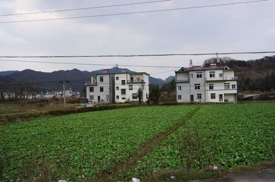 周村家家建着小洋楼,油菜地一片碧绿。