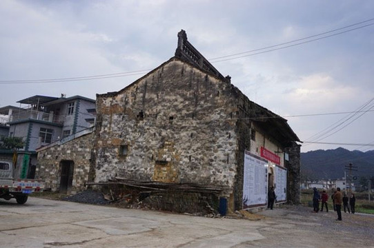 存放着刻有周家山祠堂记的石碑