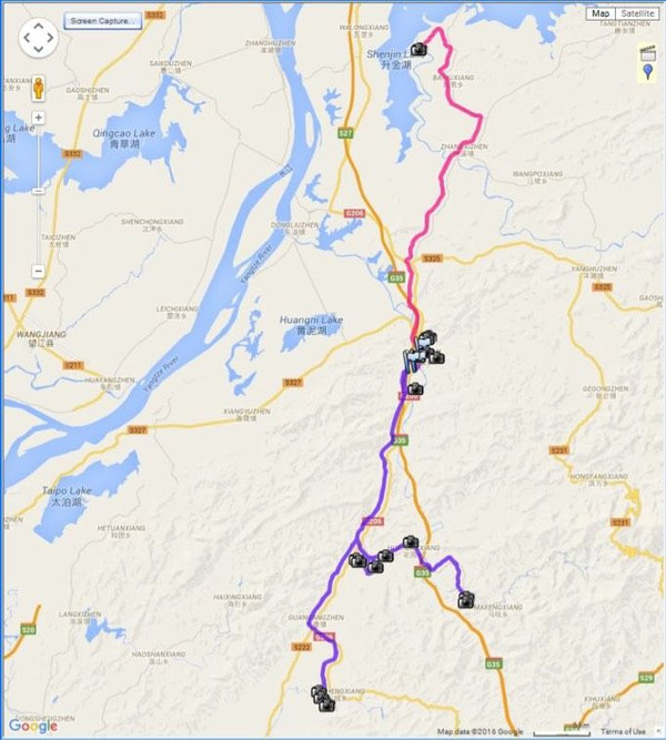 2016年春节期间,我和亲友们到从未回过的老家一安徽省东至县作了一次寻根之旅。第一天走南部(兰线)丶第二天走北部(红线),总行程100公里。