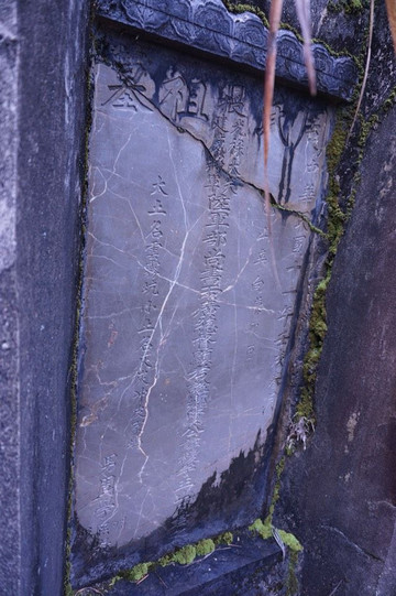 破损的墓碑虽遍布青苔,但遮不住昔日的辉煌。