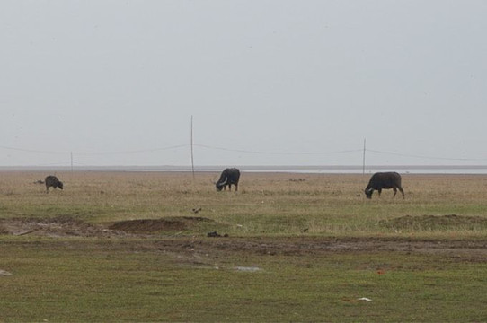 此时大多鳥类已北迁,只有水牛在悠闲地吃草。