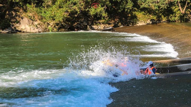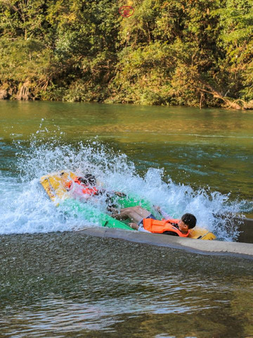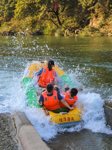 我们这次来到石台著名的怪潭漂流,位于秋浦河的上游一段,是江南最早开发,最长漂程,最具刺激,最大规模的漂流区。怪潭顾名思义,这里怪石嶙立,河道曲折蜿蜒,水流喘急,带着些探险的意味,被游客赞誉为“皖南第一漂”一点都不为过。