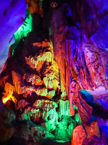 其次就是溶洞内的天然钟乳石群,最让我震撼的一个是9米多高的巨型钟乳“落地金钟”;另一组就是巨幅自然山水壁画,也是天然形成的;最后就是先前提到的白色透明的“罗纱帐”,导游介绍这是碳酸钙结晶组成的奇景,白色透明,造形奇特,形象逼真,色彩纯净,为国内其他溶洞所不及。
