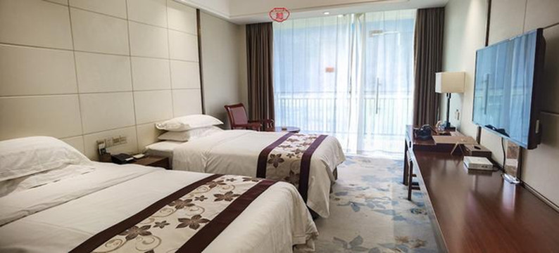 酒店的房间很宽敞,每个房间都有一个阳台,推开阳台门,我们眼前是满眼碧绿,青山绿草地,秋浦河就在这附近,也是一处风水宝地了,固然餐厅的饭菜也超好吃哦,后续介绍。