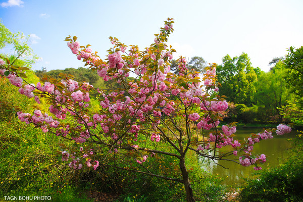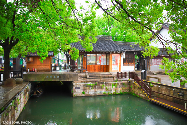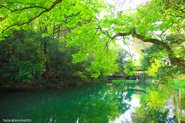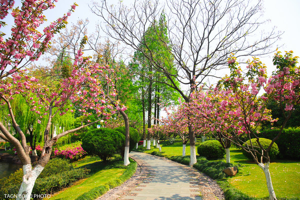 樱花树,翠绿色的柳树随着风轻轻一吹就会摇动着身姿,那花,那水,那树,那桥构成了一幅美丽的山水画。