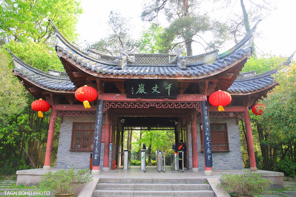每当旭日东升,太阳的光芒仿佛唤醒了所有植物,还让千丈岩石面上的三个大字发出了耀眼的红光;夕阳西下,太阳让庞大的千丈岩遮住自己的半边脸,无数道金光散开来,如同仙境一般。
