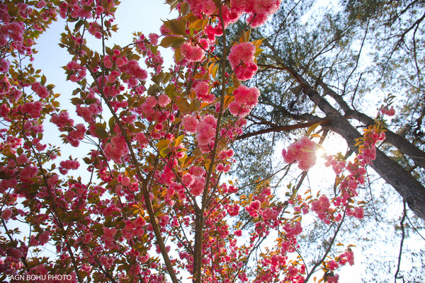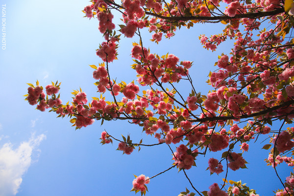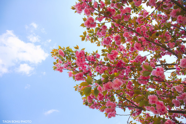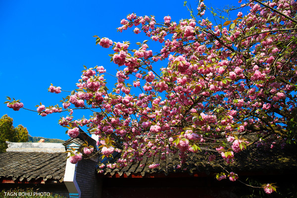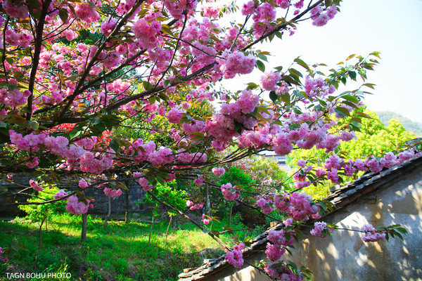 人间四月天,溪口雪窦山樱花树的枝条上裹上一层斑斓的色彩,一簇一簇开满树。