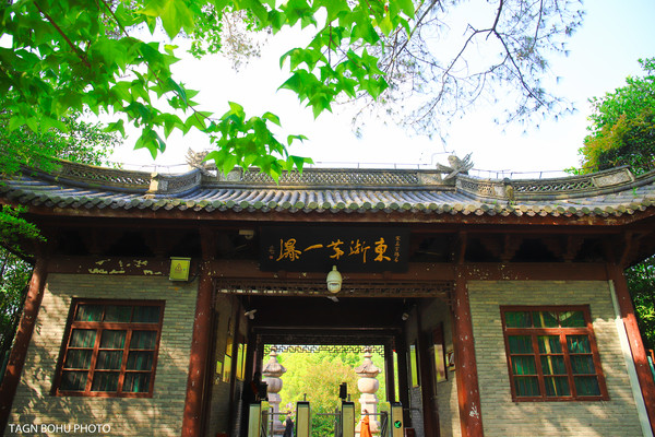 就在雪窦寺旁边有一个景点叫张学良将军第一幽静地景点,之前是雪窦山招待所(中旅社旧址),里面是张将军事迹陈列馆放,也是国家级风景区雪窦山景区的又一新的人文景点。去参观的人还挺多了。其实里面真的是很小的,只有一幢小楼哦,不过景色还是挺不错的,环境优美,樱花盛开。旁边就是雪窦寺。可以看到弥勒佛。