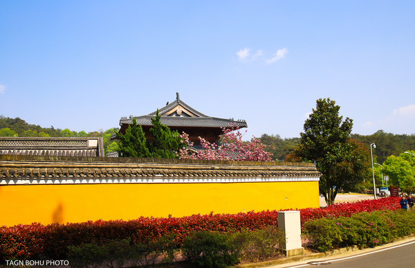 我第一站就来到了雪窦山的弥勒佛像这里,雪窦寺是雪窦山景区最著名的一个景点了,当然在这里还有很多景点比如被称为东浙瀑布--千丈岩瀑布,建议游玩的时候第一站就到这里来看看,再接着去其它景点看看,因为雪窦山景区是一个比较大的景区,而且各个景点在山上是分开的,各景点通过景区的公交车连接着。在雪窦寺前面有很多樱花,去的时候正好开得最美丽的时候被我们看到了,也算是一种惊喜吧。