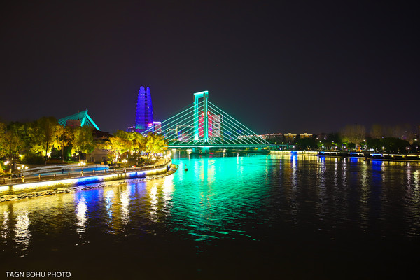 宁波的外滩一到晚上华灯初上,内河两岸灯光璀璨,漫步岸边美丽夜景尽收眼底。