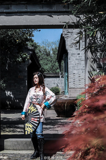 刚好当天穿了一套国潮唐装,跟整个环境相当融洽,于是便拉着小伙伴,一起拍美照