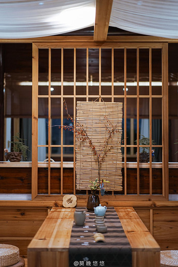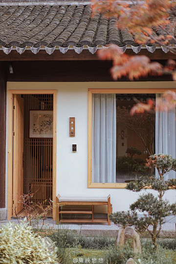 曲径通幽处,禅房花木深,大概就是眼前这样的场景吧。民宿的庭院设计别具一格,是由老房子改造而成,在保留其原本样貌的基础上,融入了简约日式的风格。