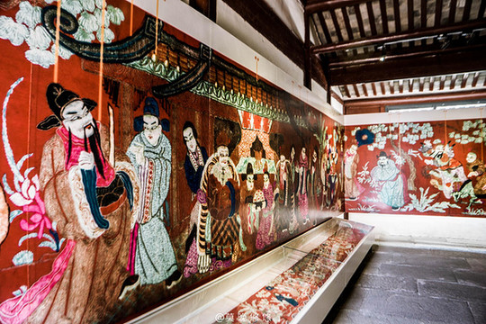 冯岳彩绘台门现为母亲的艺术展馆所在地,共有六个展馆,分别是女红馆、刺绣馆、纺织馆、蓝印花布馆、中国结馆和传习馆。
