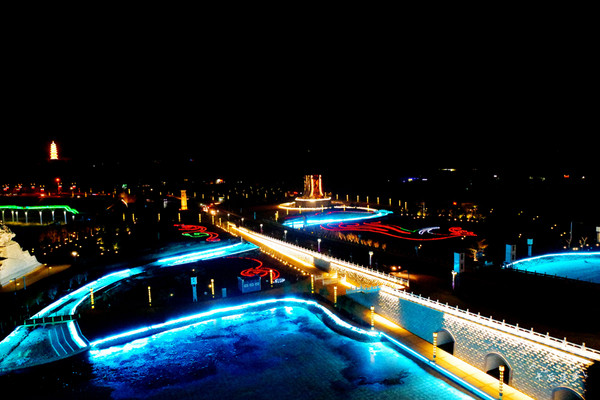 再看夜色朦胧的庆城,静谧的柔远河轻轻缠过凤城东畔,温柔地抚揽起养生小镇那秀丽的小蛮腰。霓虹忽闪,古朴典雅的民俗景观层出不穷,阵阵清香袭来,令游人悄然迷醉在这世外桃源之中。