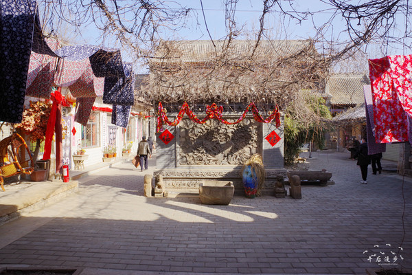肖金义渠村。建筑风格80%为青 砖、灰瓦;清代木质门窗,包括山门风格,为木质 卯榫结构。一部分为生土建筑, 即利用五、六十年代废弃的旧崖庄地坑院,经过修缮把窑洞改造为农家乐,古朴、沧桑、浑厚而灵动。