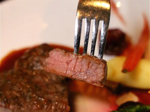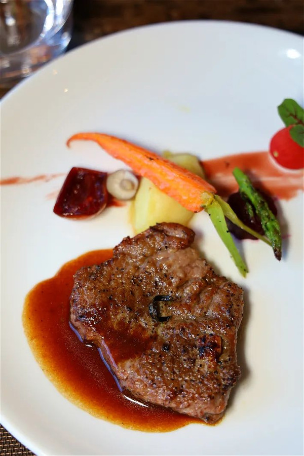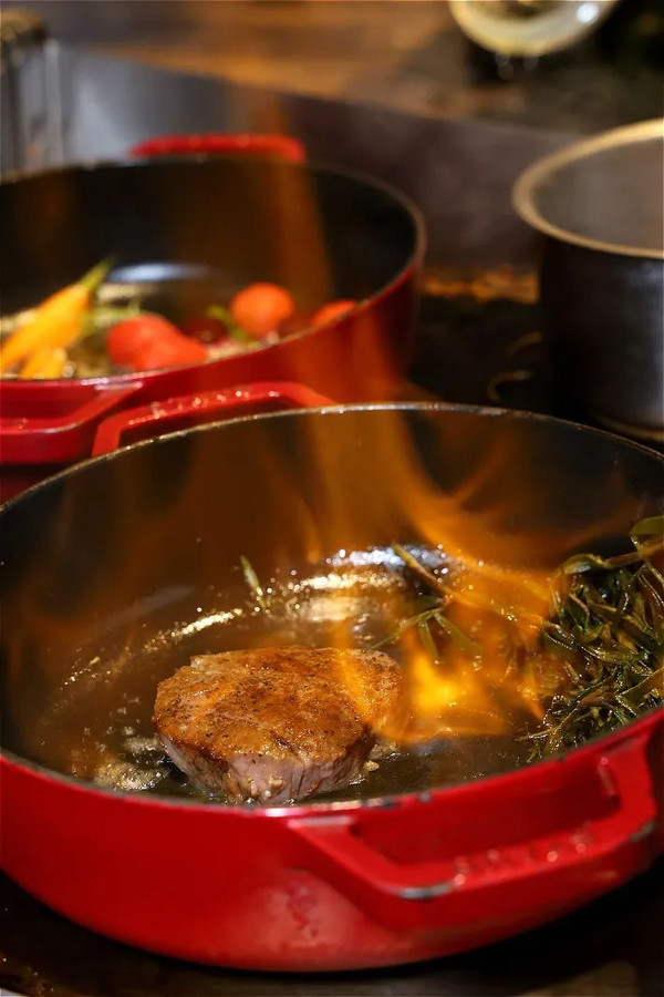 大厨现场示范,肉的嫩红还保留着,却看不到明显的血丝,鲜嫩多汁和熟度平衡得很棒。