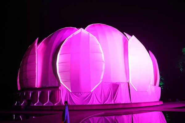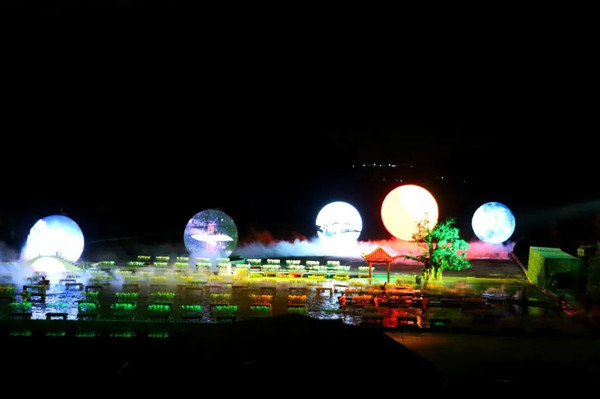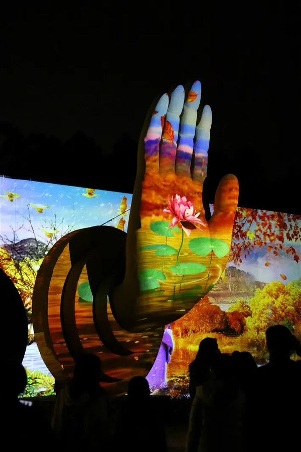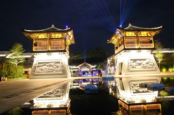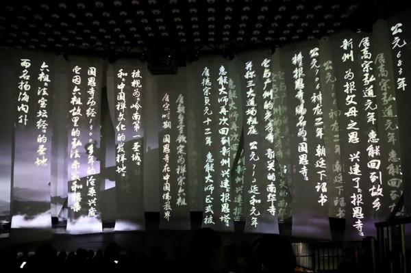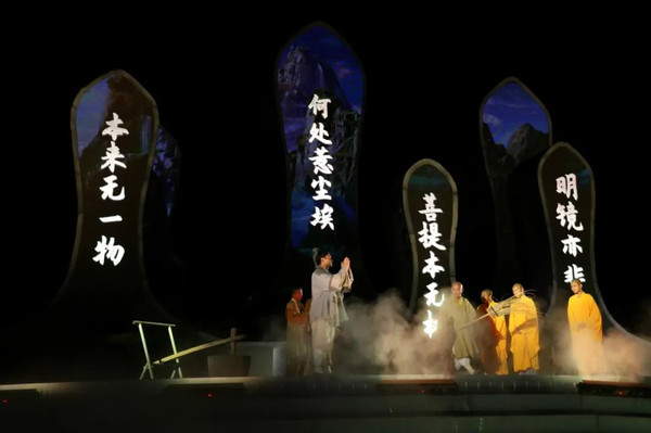 2020年为适应不断变化的文旅市场需求,尤其是广大游客不断提升的旅游审美需求,禅域小镇《六祖大典》在保留原演出中六祖惠能伟大一生的精髓内容外,大胆采用高新科技手段,以禅域小镇风幡广场的唐风门楼为介质,创新开发了反映新兴在地文化特色的光影秀,成为禅域小镇新的演出亮点。