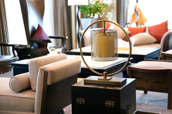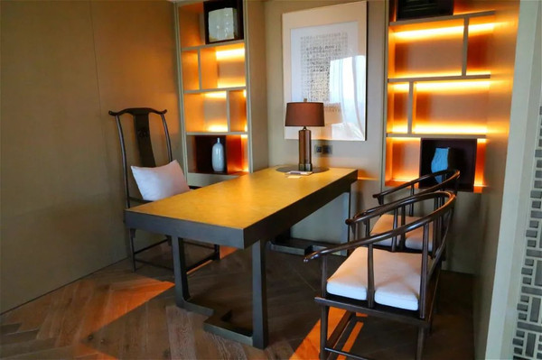 客房迷你吧柜的造型取自东方“食盒”造型;客厅宽敞舒适,舒适的写字椅符合人体设计理念。内饰风格现代简约,主桌,接待茶室都应有尽有。
