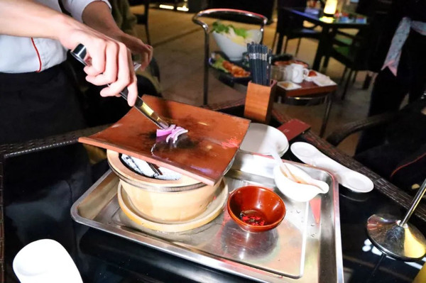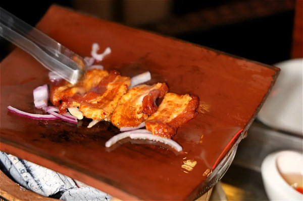 小小瓦片滋滋的烤出风味烤肉,广州的冬天,探炉烧烤很过瘾哦。【大堂吧】