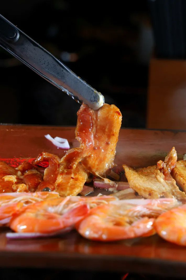 晚上宵夜,在酒店一楼还可以享受别具特色的瓦片烧烤。