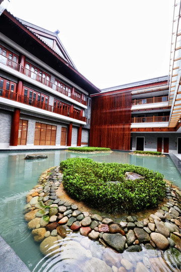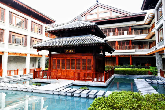 酒店里主楼拥有283间中式客房,虽然是现代化的酒店,但他们的格布局很像以前古时候客栈的四合院的结构,大厅穿堂后即后院。各自的房间有着各自的空间,然后又在这宽敞的走廊里重逢于江湖。